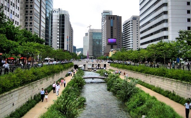 Chamo a atenção do leitor para o projeto mais ousado de ressurreição de rio urbano no mundo, realizado em Seul, Coeria do Sul em 2005, quando o rio Cheong-Gye foi literalmente trazido de volta à vida, inclusive na superfície onde antes havia uma horrenda via expressa para carros como viaduto[2]. Vejam a diferença entre antes e depois. É inacreditável a transformação que os sul-coreanos conseguiram ali! Nem São Paulo conseguiu com o seu rio Anhangabaú no centro, mas não significa que outras cidades brasileiras não devam tentar inclusive Belém.