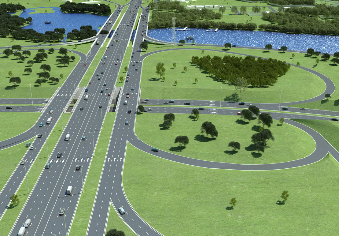 Nada além de carros nas ilustrações do projeto Trevo de Triagem Norte. Imagem: DER-DF.