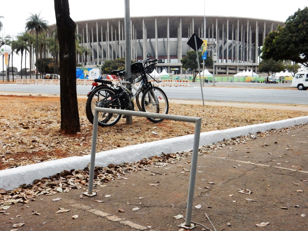 Sem espaço seguro e confortável para bicicletas no bilionário estádio. |