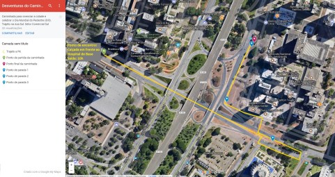 Sairemos do Setor Comercial Sul, da calçada em frente ao Hospital de Base. Confira o trajeto:
