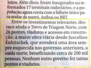 O artigo do governador destaca o TTN entre os “investimentos relevantes”. É nítida a contradição com o programa de governo, que dedica um capítulo à mobilidade: