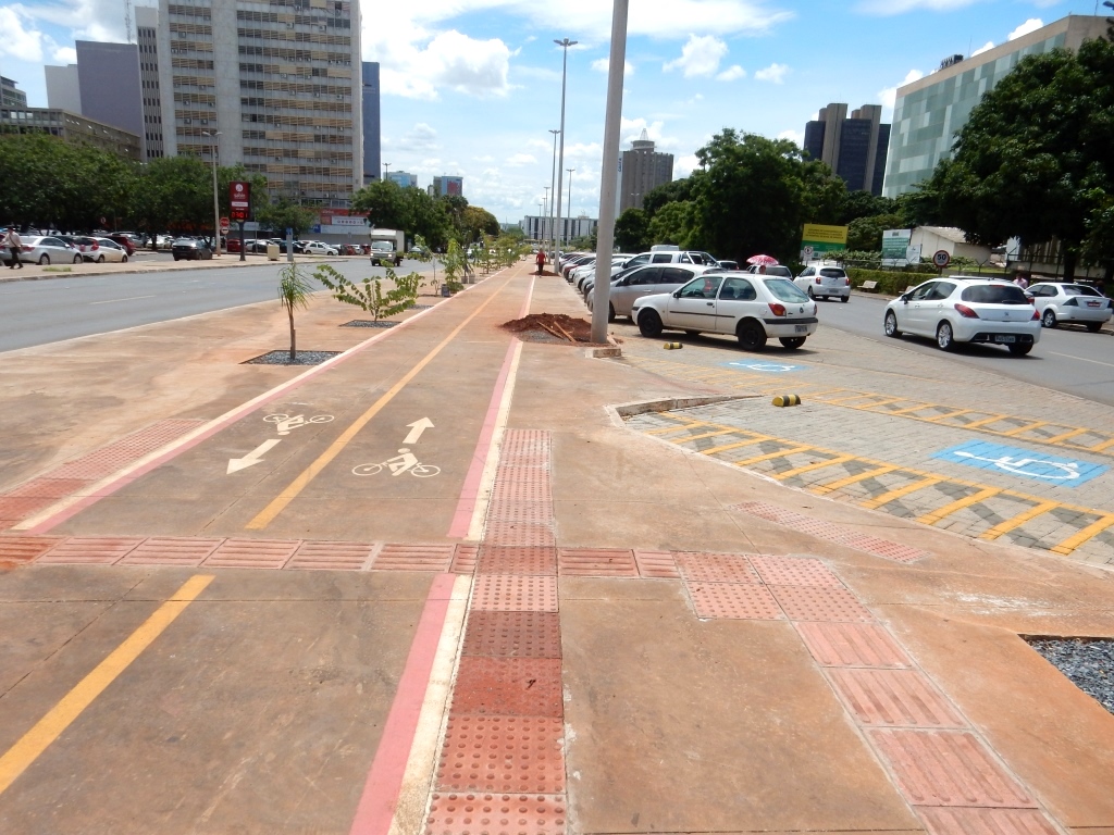 Descontinuidade e bloqueios na ciclovia da Asa Norte em 2017.