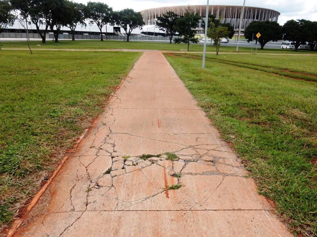 A calçada ao longo do Eixo Monumental, próxima ao estádio, ficou inacabada. Teria faltado recurso para concluir a calçada?