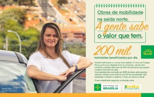 Além de lançar mais uma turma do curso para encorajar os medrosos a assumirem o volante, o GDF vem espalhando anúncios nos pontos de ônibus e em jornais sobre as obras do TTN (Trevo de Triagem Norte, também conhecido como “Terrível Trevo Norte”), voltadas ao transporte automotivo. O curso de superação ao medo de dirigir e os anúncios com a motorista em destaque – feliz com os vários túneis e viadutos em construção – completam o pacote de benesses automotivas, que comentamos em texto publicado recentemente no blog (clique para conferir).