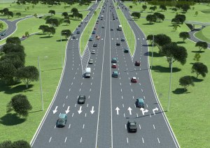 Na imagem do projeto TTN (fonte: DER-DF), nada além de carros. Anúncio do GDF destaca a felicidade da motorista com os inúmeros túneis e viadutos.