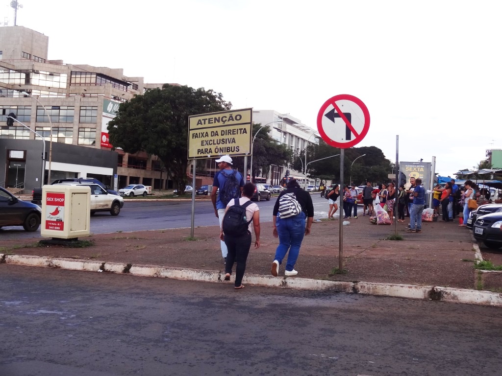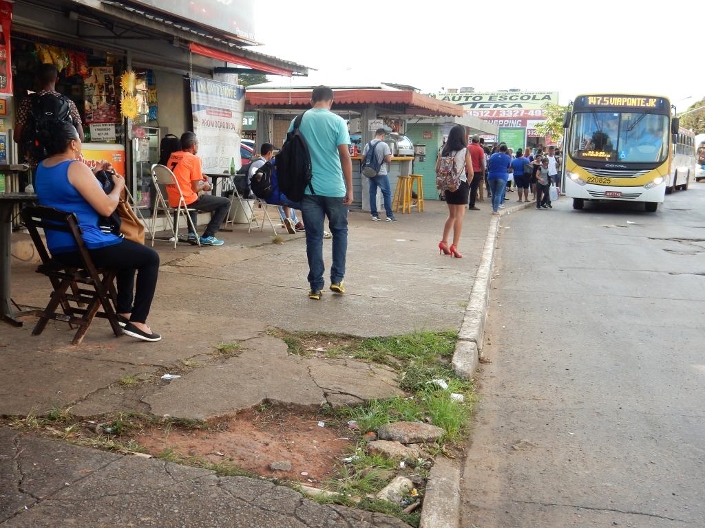 A região da 513/713 Norte é o retrato fiel do abandono e da inacessibilidade. Além da falta de pontos de travessia com faixa e semáforo, os canteiros e as calçadas ficam completamente tomados por carros e os usuários de ônibus ficam espremidos, acuados no meio dos carros à espera do transporte na volta para casa.