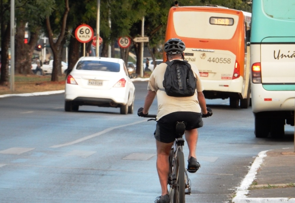 Por falta de infraestrutura, ciclistas dividem espaço com carros e ônibus em alta velocidade.