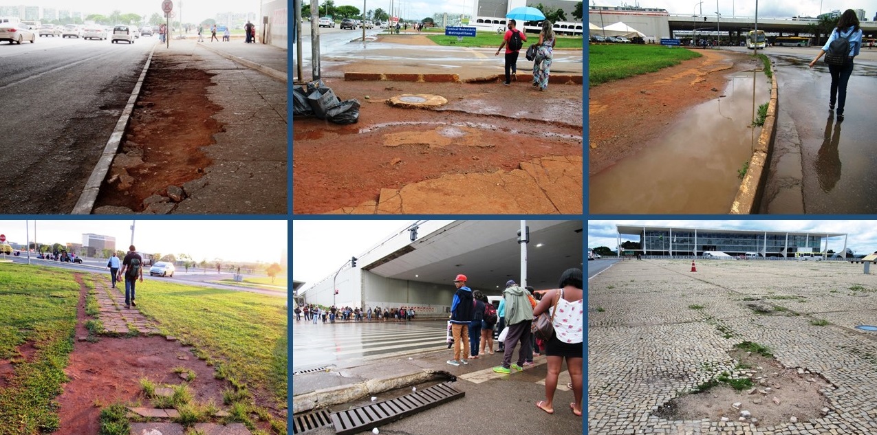 O trabalho de excelência feito internamente pelos órgãos públicos precisa ser levado para a parte externa, com o auxílio do Governo do Distrito Federal. Participei do seminário e fui de bicicleta ao evento. No trajeto fiz os registros habituais. É incrível como, ao longo dos anos, o estado de inacessibilidade se mantém inalterado. Na verdade, as crateras no caminho dos pedestres aumentaram. No período de chuvas, a lama torna o percurso ainda mais desafiador.