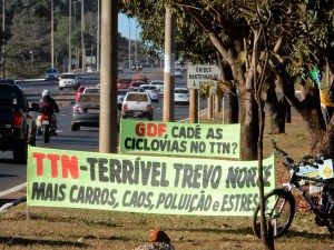 Eixão Norte: muitos carros, transporte coletivo sem prioridade, pedestres e ciclistas em risco.