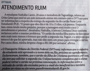 Algumas das muitas queixas contra o péssimo serviço prestado nos postos de atendimento a estudantes e trabalhadores. Fonte: Correio Braziliense.