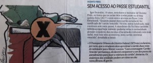 Estamos assistindo à tentativa de retirada de um direito adquirido por estudantes que, durante anos, lutaram para que o passe estudantil fosse gratuito. Essa parcela significativa da população já recebe um serviço que deixa muito a desejar: não bastasse a precariedade do transporte coletivo, os estudantes ainda têm que encarar longas filas a cada início de semestre letivo para garantir o passe. Não é à toa que jornais e redes sociais expõem, diariamente, queixas de estudantes e trabalhadores que dependem de ônibus e metrô. Na seção do blog voltada às queixas da imobilidade, a maioria das queixas se refere à péssima qualidade do transporte público.