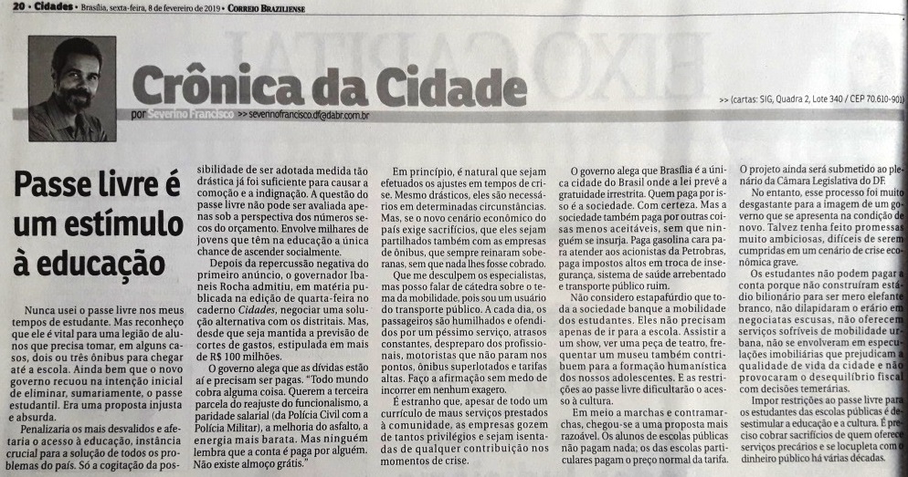– Crônica do Severino Francisco (Correio Braziliense, 8/2/2019)