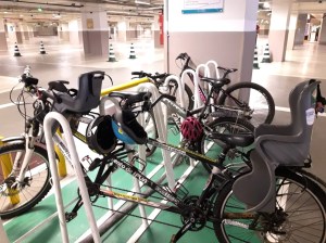 Nos centros comerciais, bicicletários adequados e com muitas vagas costumam ficar repletos de bicicletas.
