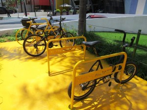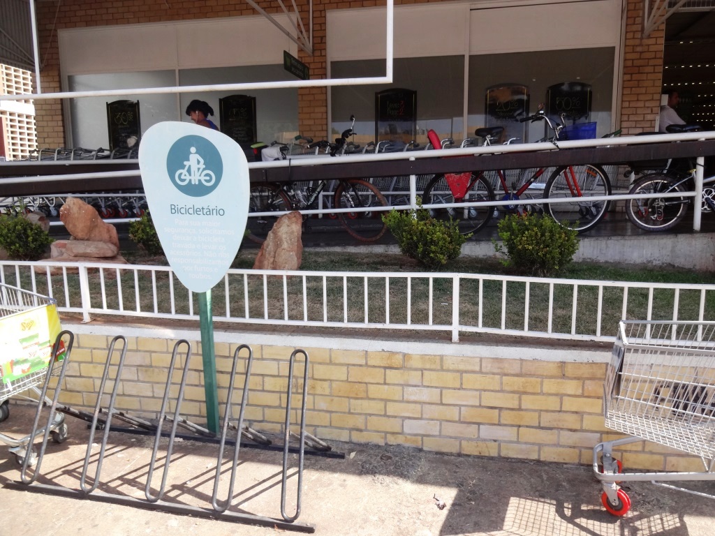 Vagas para bicicletas em estabelecimentos comerciais de Brasília.