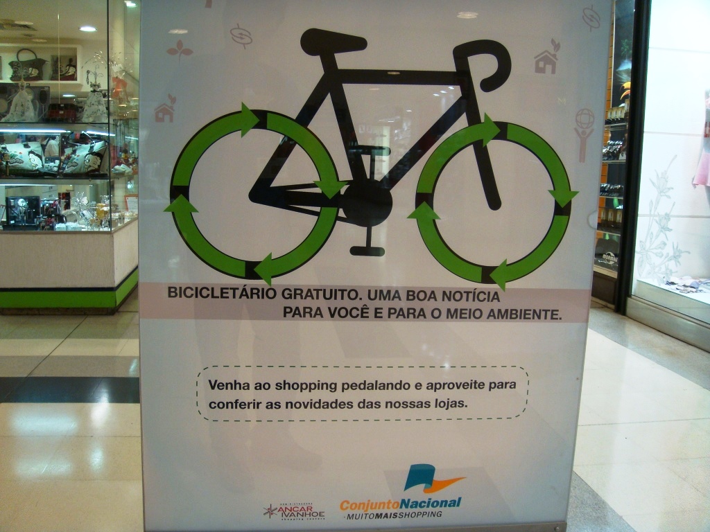 O bom exemplo vem do setor privado. Os principais shoppings da capital federal têm espaço reservado e gratuito para os ciclistas: Conjunto Nacional, Boulevard, Brasília Shopping e Pátio Brasil. O Conjunto Nacional já chegou a espalhar cartazes para incentivar os clientes a usar bicicleta.