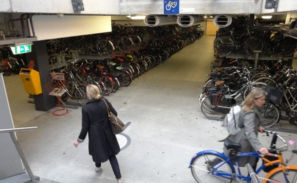 Entre as soluções para a mobilidade nas cidades modernas está a integração dos modos ativos ao transporte coletivo. Bicicletários amplos ao redor dos terminais de transporte e pontos de ônibus são comuns nas cidades europeias. Em Amsterdã existem até estacionamentos subterrâneos para os ciclistas, gratuitos e abertos 24 horas.