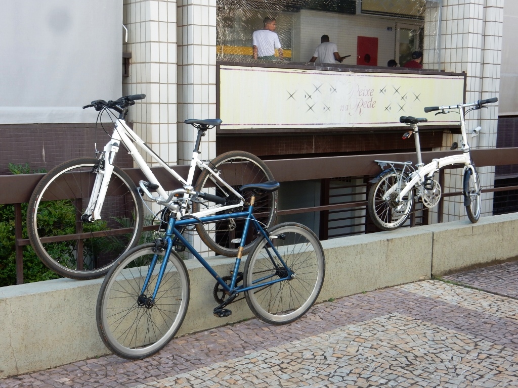 A escassez de bicicletários faz com que os ciclistas improvisem e recorram a lixeiras, postes, árvores e corrimões.
