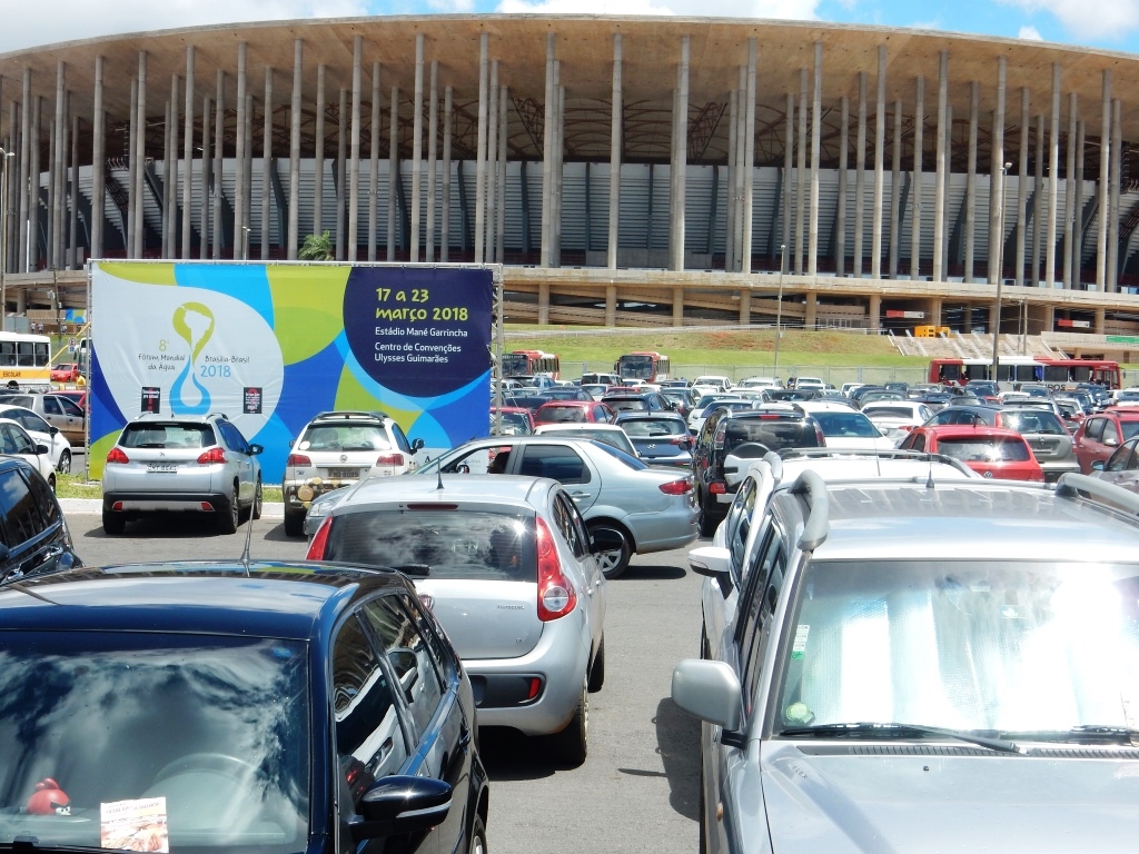 Fórum Mundial da Água (março/2018): muitas vagas para carros; pedestres e ciclistas em apuros.