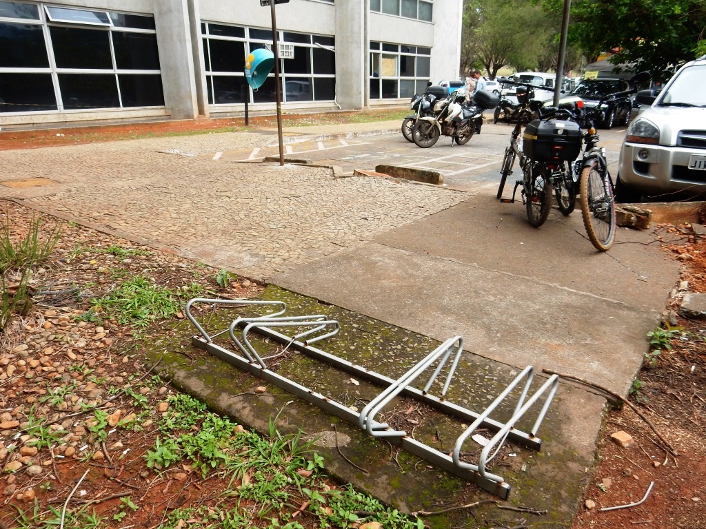 Suportes inadequados e destruídos no Setor de Autarquias Sul, prédio da Receita Federal. |