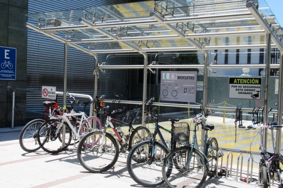 Bicicletário coberto em frente a comércio. Santiago (Chile).
