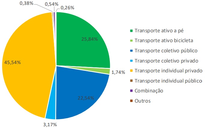 O transporte motorizado individual tem grande participação nos deslocamentos. Fonte: Plano Diretor de Transporte Público sobre Trilhos (PDTT, 2018).