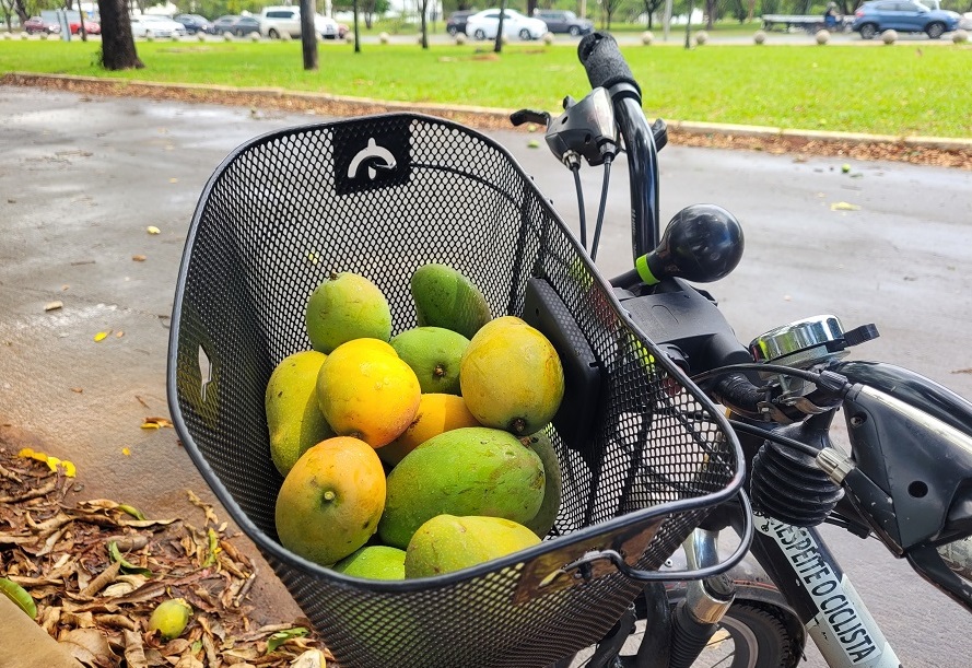 É prazeroso caminhar por canteiros arborizados e colher as frutas da estação. Perdi as contas de quantas mangas – de diferentes tipos – colhi no final do ano nos trajetos a pé e de bike. Muitas vezes voltei com a cestinha e o baú da bicicleta recheados (e perfumados). As frutas e as aves são bons atrativos. Quero-queros, curicacas e corujas alegram o caminho.