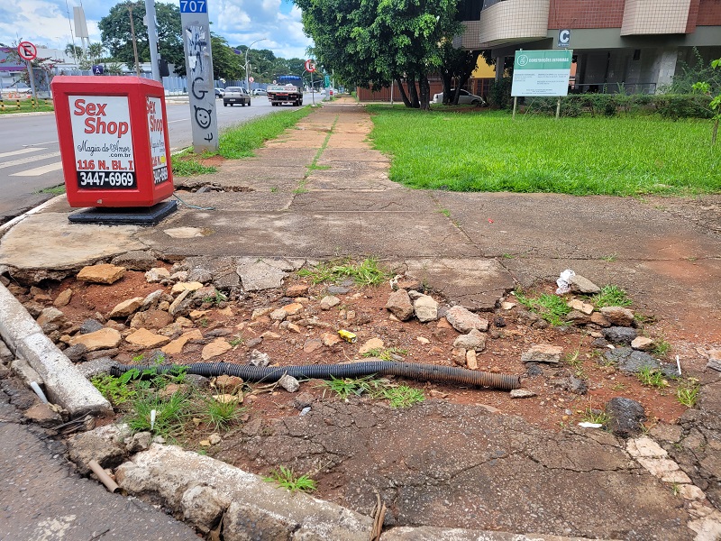Calçada destruída (W3 Norte) e caminhos de rato (Setor Médico-Hospitalar).