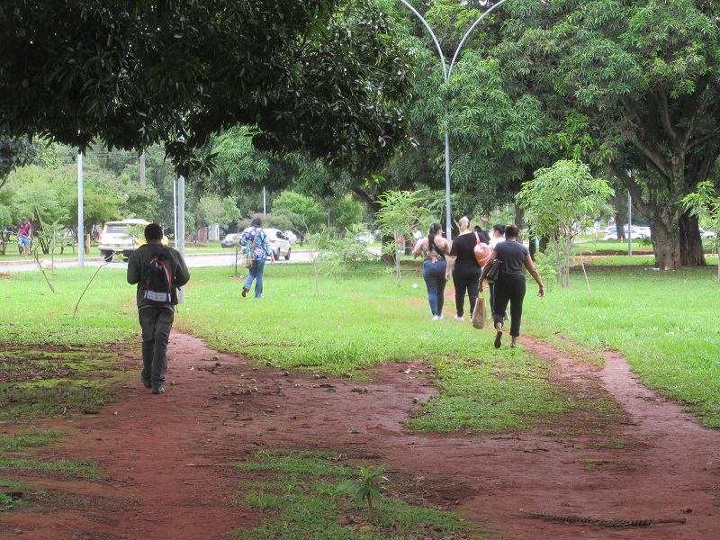 Muitas vezes sequer há calçada e o jeito é caminhar pela pista, dividir espaço com os motoristas. No setor médico-hospitalar, assim como em tantos outros cantos do Distrito federal, os caminhos de rato (tecnicamente chamados de linhas de desejo) estão bem demarcados no gramado.