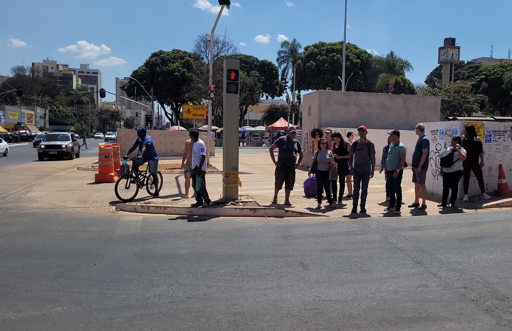 Encontrei na Praça do Relógio o Júlio, Eloy e Felipe, moradores da região e membros da Rede Cidadã de Taguatinga. Eles me mostraram outro problema no pseudo-boulevard (com tanto concreto e sem local de lazer e convivência não dá para chamar de boulevard): a esquina da morte. Um cruzamento mal sinalizado e que, apesar do grande movimento de pedestres e ciclistas, muitos motoristas passam bem rápido. O Sr. Eloy comentou que já houve, pelo menos, dois atropelamentos recentes (vídeo divulgado no Instagram).