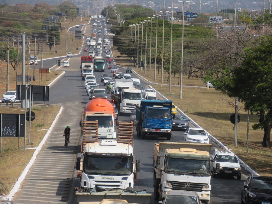 A ciclovia termina mais uma vez, próximo do acesso à EPIA. Me preparo para enfrentar o mar de carros parados – EPTG, EPIA e EPIG com fila interminável de carros e caminhões. Poucos ônibus no horizonte.