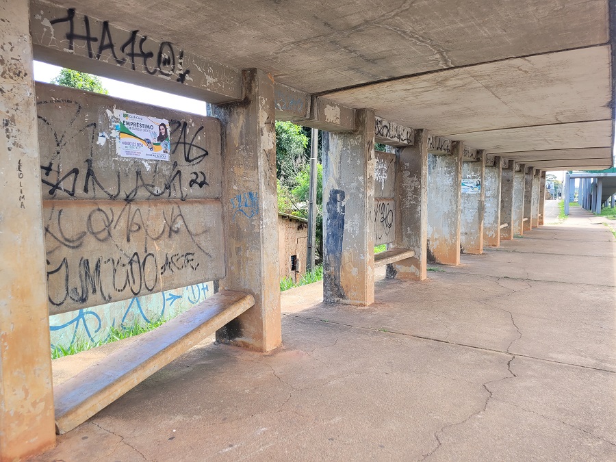 Pontos de ônibus na EPIG – sem melhorias, apesar da obra do viaduto.