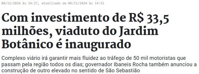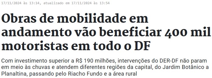 Notícias de novembro/2024 destacam os principais beneficiados com as obras.