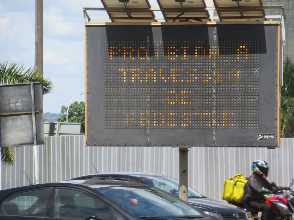 Início do Eixão/Eixinho Norte: alto risco e proibição de atravessar.