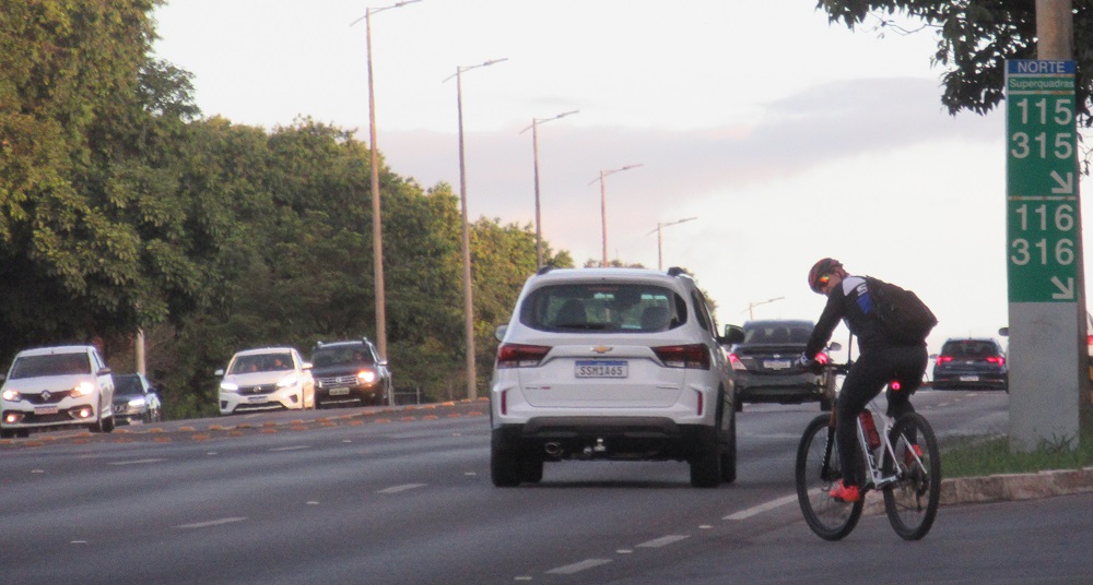 Ao passar em dia de semana, sozinho de bicicleta (ilhado no canteiro do Eixinho), me pergunto onde foram parar aquelas pessoas a pé e de bicicleta que lotam o Eixão do Lazer. Se houvesse condições favoráveis para se caminhar e pedalar no Eixão e nos Eixinhos (nos sentidos norte-sul e leste-oeste), parcela considerável dos moradores da Asa Norte e da Asa Sul poderia ser convidada a deixar o carro em casa e optar por outra forma de transporte.