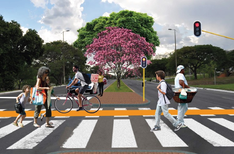 Semáforos e faixas de travessia no Eixão (proposta de Amanda Sicca).
