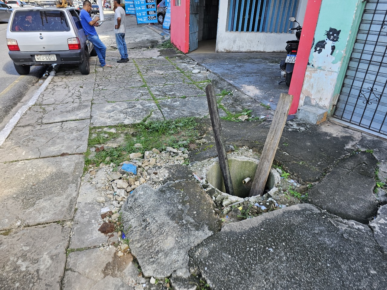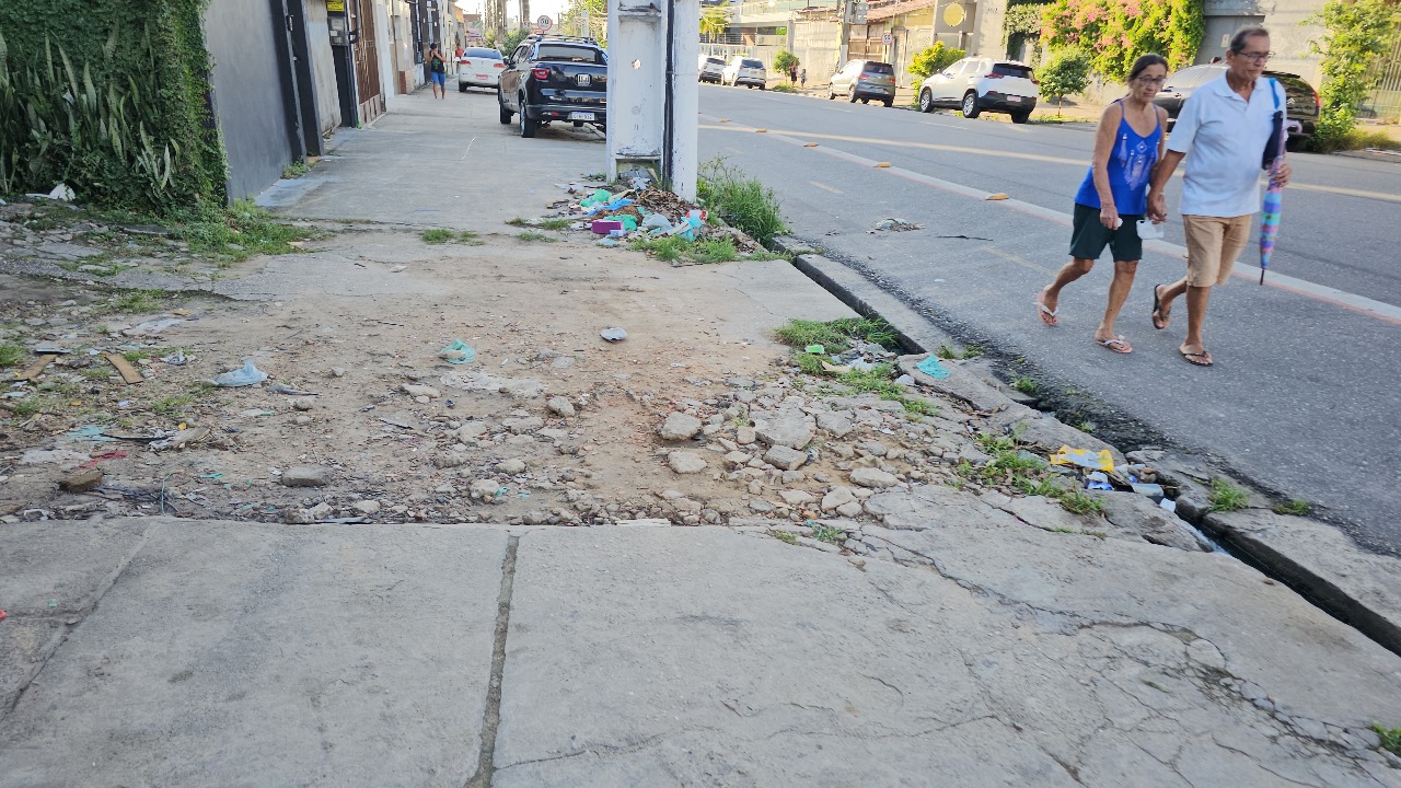 As calçadas também merecem investimento do governo. As crateras estão por todo lado e é comum ver carros estacionados no lugar do pedestre. A falta de rampas e os desníveis entre a calçada e a pista também dificultam o percurso dos caminhantes.