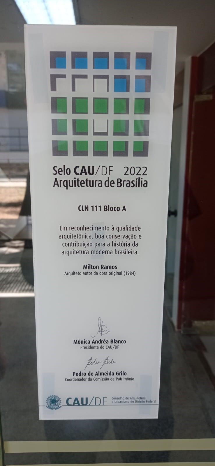 Selo CAU/DF para o prédio do bloco A do CLN 111.