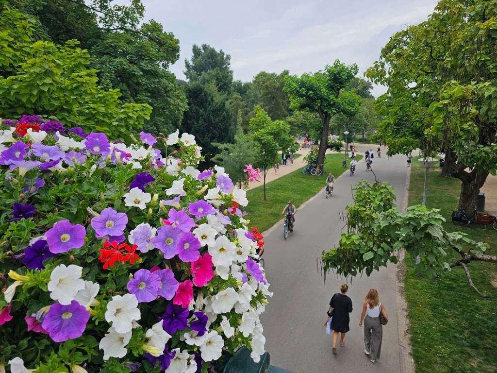O caminho de volta para Amsterdã (ponto de início e chegada) foi delicioso, com rotas seguras e áreas verdes, incluindo um grande parque ao sul da cidade.