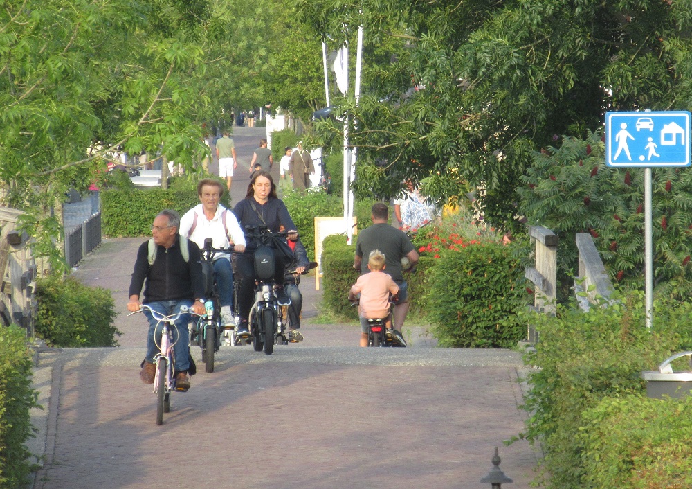 O fluxo de carros costuma ser baixo, até porque não há muito espaço para eles. Muitos locais e ruas são exclusivos para pedestres e ciclistas. Pontes exclusivas para quem caminha e pedala também são comuns.