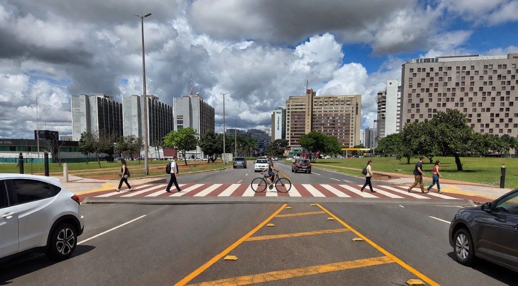 Início da Asa Norte com faixa de travessia. Imagem transformada com ChatGPT.