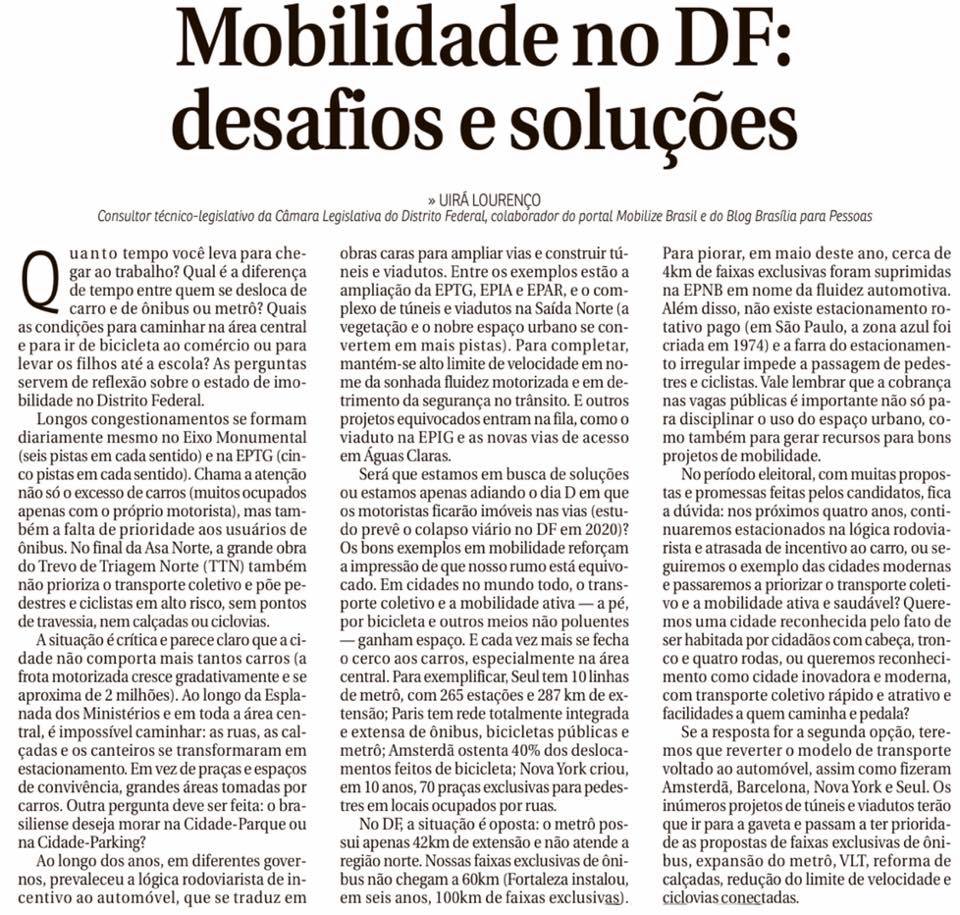 O texto está disponível no portal do Correio Braziliense: https://www.correiobraziliense.com.br/app/noticia/opiniao/2019/12/26/internas_opiniao,816646/artigo-balanco-da-i-mobilidade-no-df.shtml