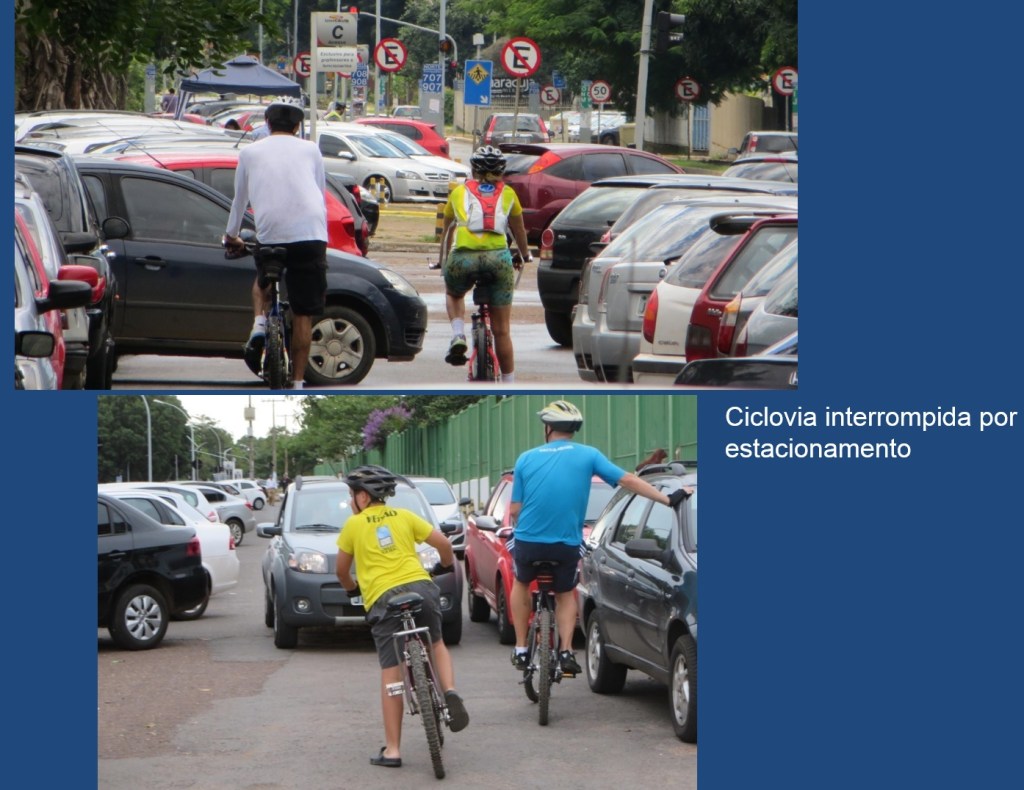 Um dos grandes problemas para quem percorre a ciclovia (a pé e de bicicleta) é a interrupção no caminho. Nas proximidades do UniCEUB, interrogações foram pintadas em 2014 para questionar a falta de continuidade da ciclovia. Até hoje, em 2021, o governo não respondeu ao questionamento com ações para garantir continuidade no caminho.
