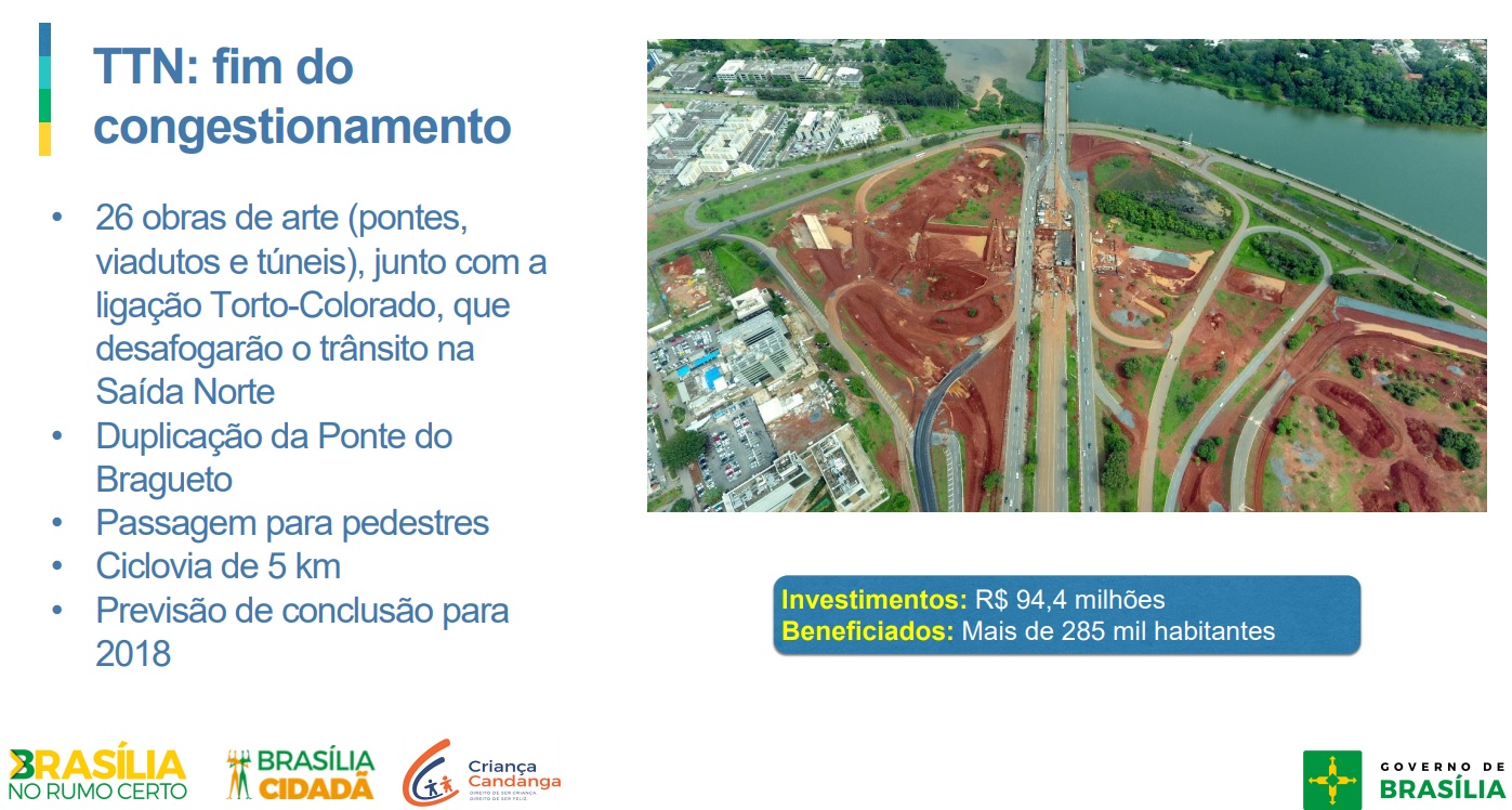 A despeito do Plano de Governo com objetivos avançados e coerentes com a Política Nacional de Mobilidade Urbana, no início do “novo” governo foram anunciadas várias obras com viés claramente rodoviarista, a exemplo da ampliação viária do Eixão Norte e da ponte do Bragueto, da construção da via Transbrasília, de túnel em Taguatinga, de viaduto na Estrada Parque Indústrias Gráficas (EPIG) e de quatro viadutos em Águas Claras.