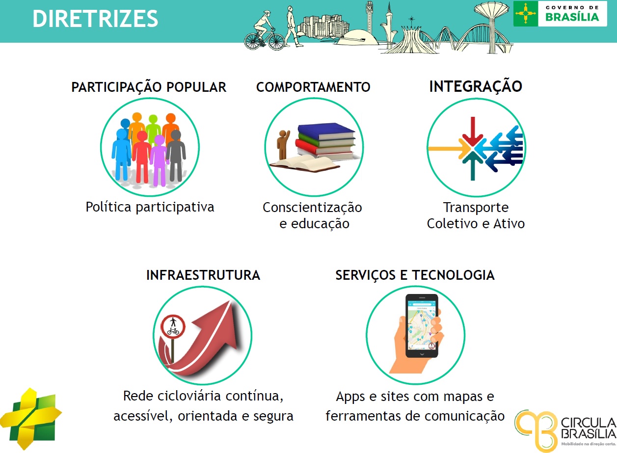 Em 2017, o GDF divulgou o Plano de Ciclomobilidade (clique para conferir o Plano), em que apresenta diagnóstico, diretrizes e proposta de infraestrutura.