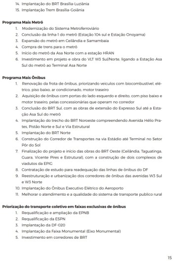 Na parte de mobilidade estão elencadas 32 prioridades, além do programa Mais por Brasília.