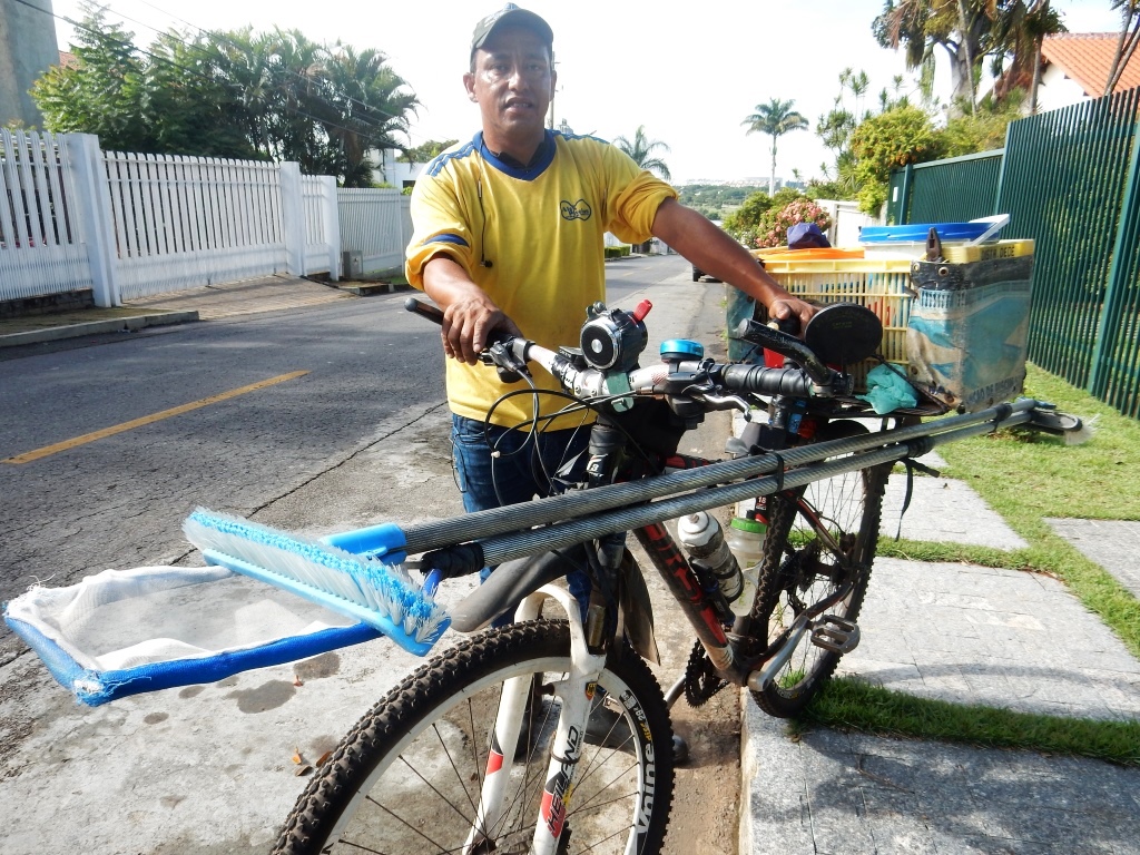 Aprendi andar de bicicleta aos nove anos, em bike de um amiguinho. Aos 12 anos consegui comprar uma bicicleta usada com meu próprio trabalho, pois fui criado sem pai e mãe e nossa situação (eu e minha avó) era difícil. Antes dos 15 anos, comprei uma bike nova no antigo Jumbo, hoje Pão de Açúcar. Continuei a usar bicicleta pra quase todos os lados. Aos quase 20 me tornei um carrólatra, deixando assim a bike de lado. Voltei usar a bicicleta como meio de transporte novamente aos 30 anos, por necessidade, pois não tinha mais carro. Hoje, aos 42 anos, continuo sendo usuário da bicicleta na maioria dos meus percursos. Sou piscineiro e adaptei meu trabalho à bike. Levo todos equipamentos na bicicleta. Bicicleta é realmente o melhor meio de transporte do planeta!!