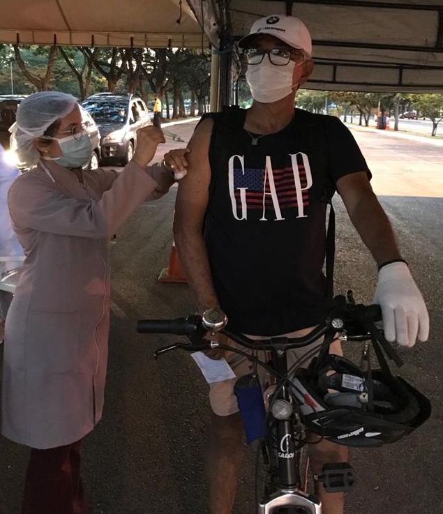 Em fevereiro de 2020 comecei a pedalar pequenas distâncias: 1, 2, 3 km. Fui aumentando gradativamente. Influenciei a minha esposa (Eliana) a pedalar comigo, inclusive fomos vacinar no parque, de bicicleta. Atualmente, pedalamos, quase diariamente, de 10 a 25 km.