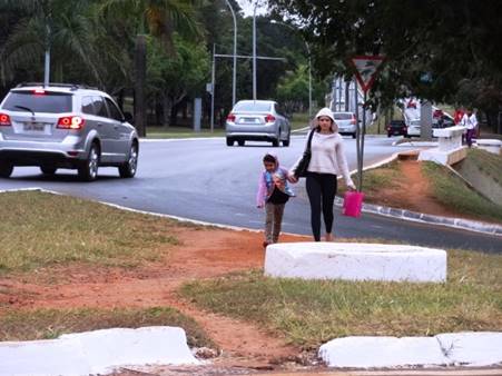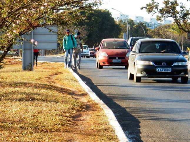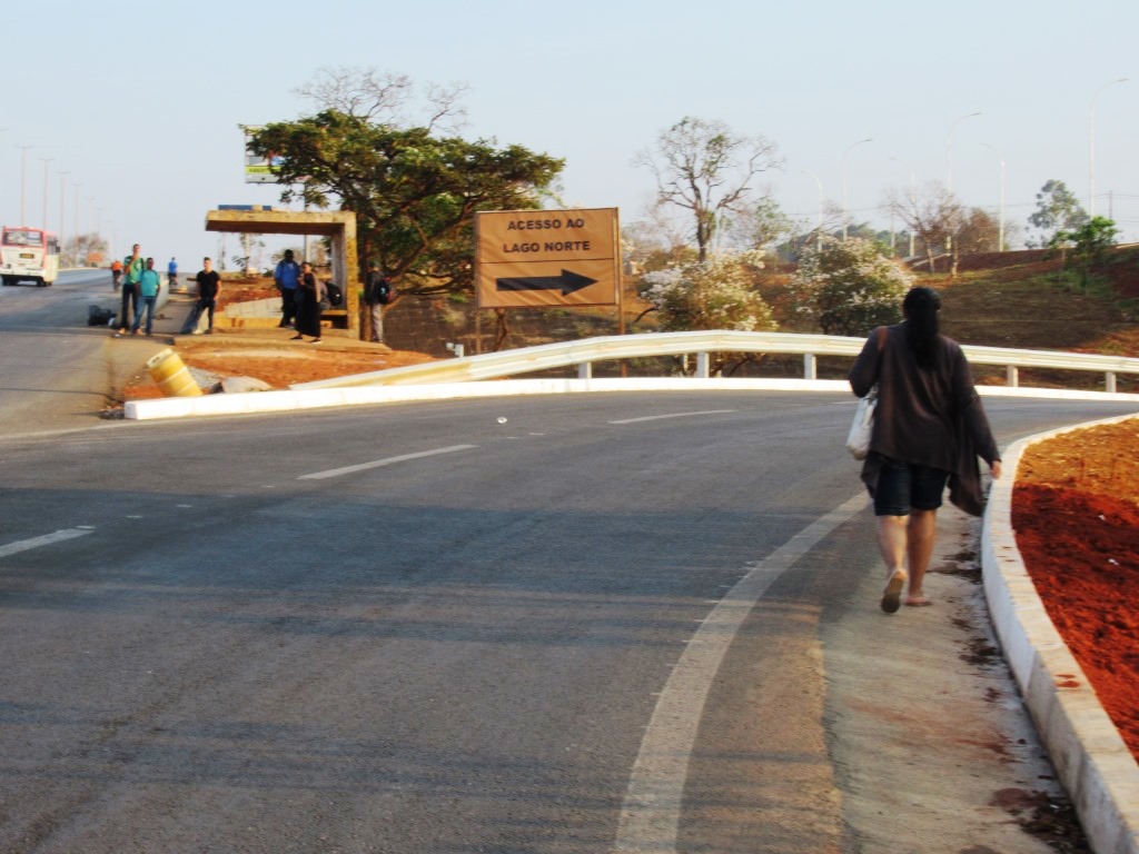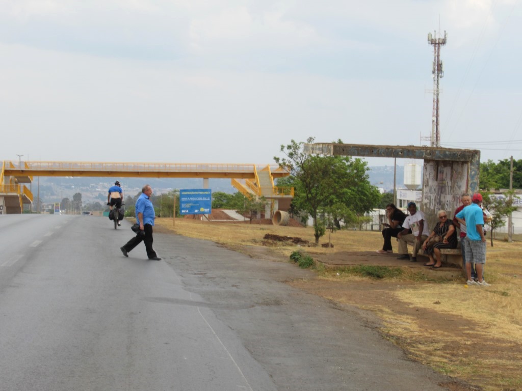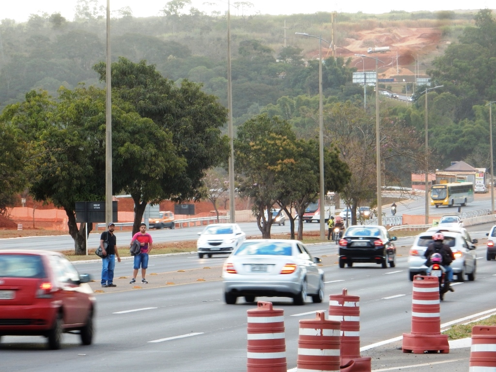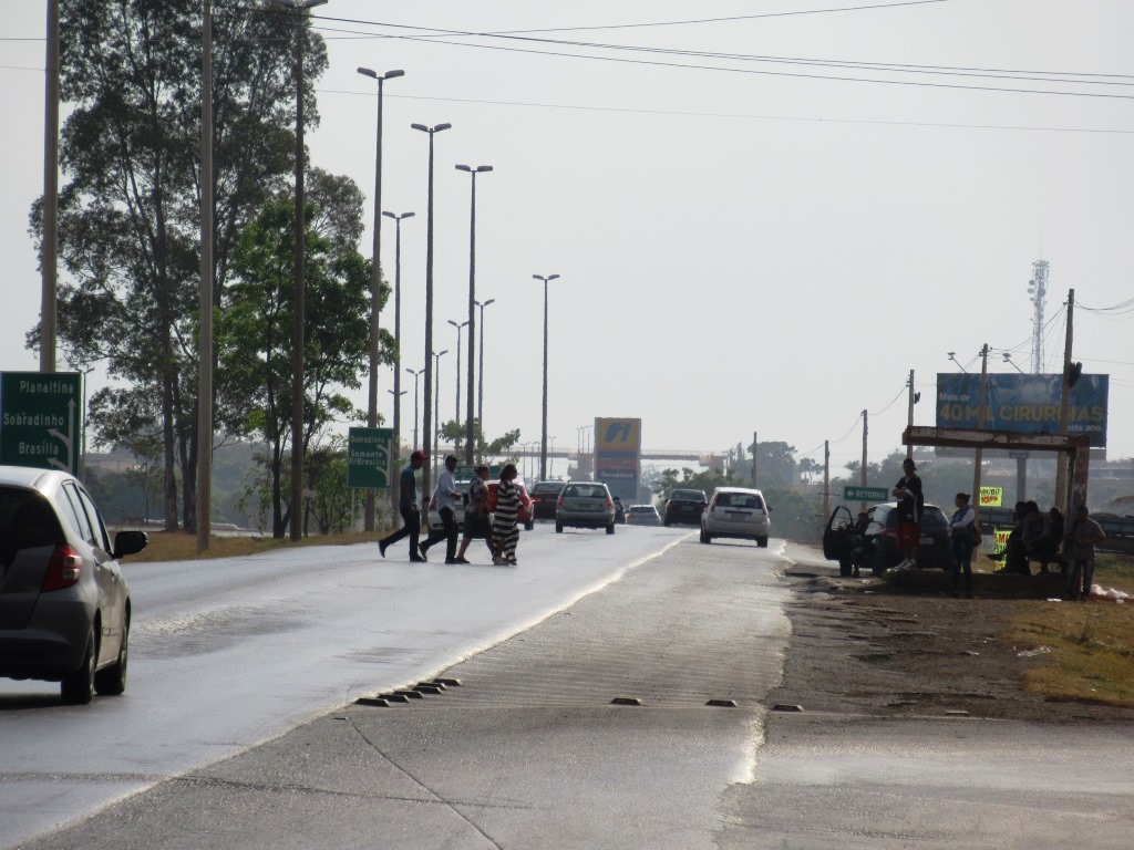 Pedestres e ciclistas também não têm vez. Existem vários pontos de alto risco na travessia, sem semáforo, faixa de pedestre ou passarela. Algumas passarelas estão em obras na BR-020, mas em quantidade insuficiente para garantir segurança. No final do Eixão Norte, próximo à ponte do Bragueto, pedestres e ciclistas correm na travessia, entre os carros em alta velocidade. E ainda há o fator de insegurança (risco de assalto), especialmente à noite.