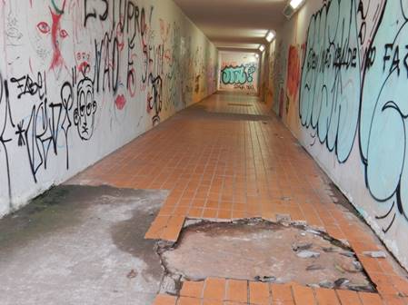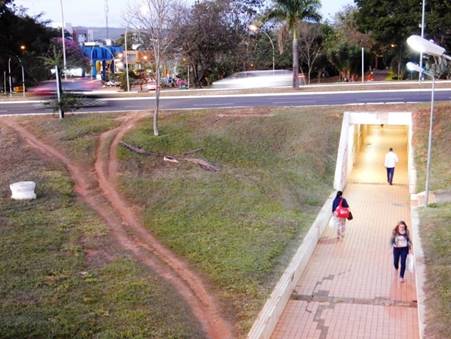 Muitos pedestres atravessam o Eixão no final da asa norte, num trecho onde não há passagem subterrânea e os canteiros estão bem marcados com os passos dos pedestres que atravessam no meio dos carros. Algumas das passagens estão bem escuras e inseguras. Todas as passagens da asa norte estão com piso quebrado e impedem a circulação de cadeirantes e pessoas com mobilidade reduzida.
