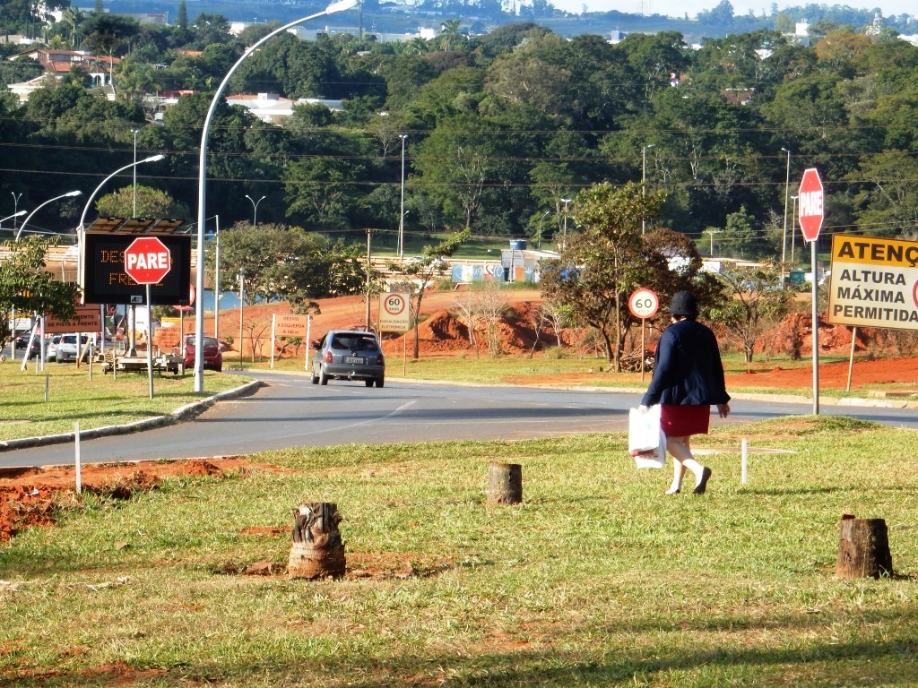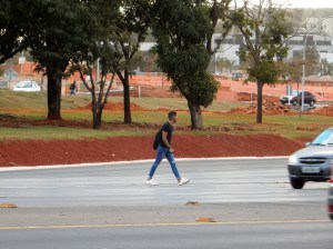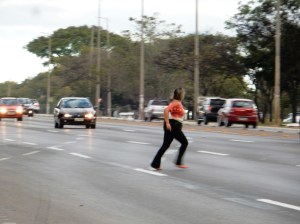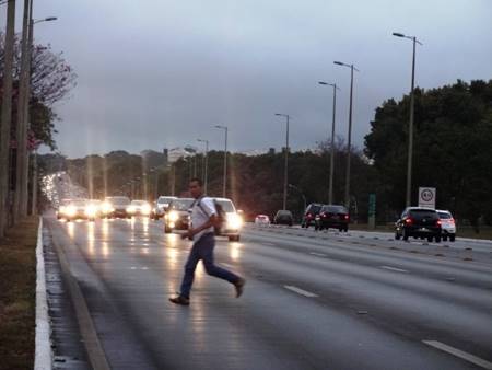 Para sobreviver em meio ao caos motorizado, pedestres viram atletas e correm para alcançar o outro lado. No caso do Eixinho, no final da asa norte, não adianta nem alegar imprudência peatonal, pois inexiste local para travessia de qualquer tipo – subterrânea ou faixa de pedestre. No vídeo uma das pedestres atletas – possivelmente sem conhecimento avançado em arquitetura/urbanismo – dá sugestão de como melhorar a situação e garantir o mínimo de segurança.